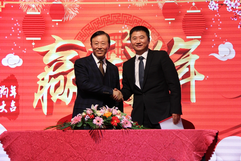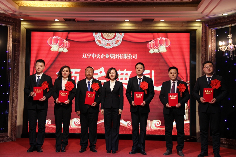 于寶權(quán)董事長(zhǎng)分別與遼陽(yáng)公司總經(jīng)理孫繼莊、天運(yùn)(嘉晨)公司總經(jīng)理周春雷、天泰公司總經(jīng)理于洪濤、物業(yè)公司總經(jīng)理王化啟、萬(wàn)豪酒店總經(jīng)理馮國(guó)簽訂2018目標(biāo)管理責(zé)任狀。
