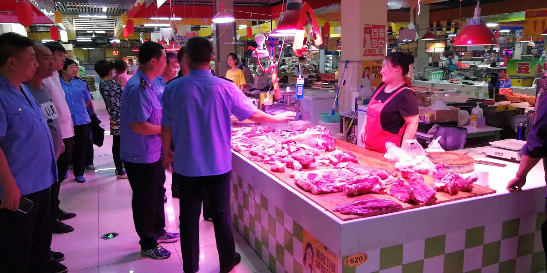 市、區(qū)食品藥品監(jiān)督局領(lǐng)導(dǎo)到中天農(nóng)貿(mào)市場對生肉品攤位進(jìn)行檢查,對市場的環(huán)境和服務(wù)給予高度的評價(jià)!此次檢查的全部商戶“證、照”齊全。我們要讓百姓放心、安全的到中天農(nóng)貿(mào)市場來購物。