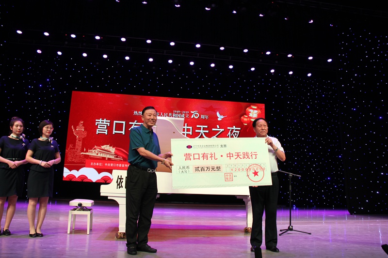 為紀(jì)念中華人民共和國成立70周年,9月9日晚,中天集團(tuán)攜手中共營口市委宣傳部,在遼河大劇院共同舉行“營口有禮·中天之夜”紅色經(jīng)典系列音樂會(huì)。活動(dòng)當(dāng)晚,集團(tuán)董事長于寶權(quán)向營口市慈善總會(huì)捐贈(zèng)200萬元,用做“營口有禮”專項(xiàng)基金。營口市委常委、市委秘書長王百勝,市委常委、宣傳部部長肖力,市人大常委會(huì)副主任徐啟,副市長金莉,市政協(xié)副主席馬春山,集團(tuán)董事長于寶權(quán),總經(jīng)理于洪波,西市區(qū)區(qū)委、區(qū)人大、區(qū)政府、區(qū)政協(xié)等領(lǐng)導(dǎo)及首屆禮德榜樣代表,與集團(tuán)員工和業(yè)主代表等近千人共饗音樂盛宴,踐行“雷鋒精神,營口有禮”。