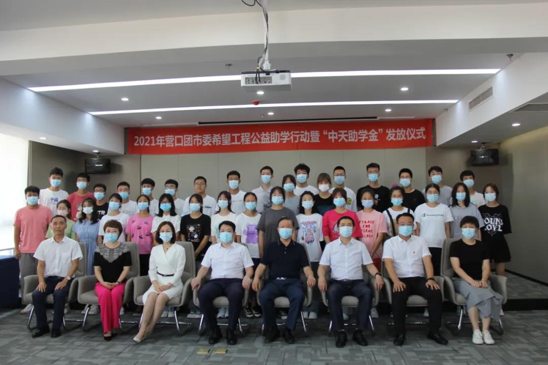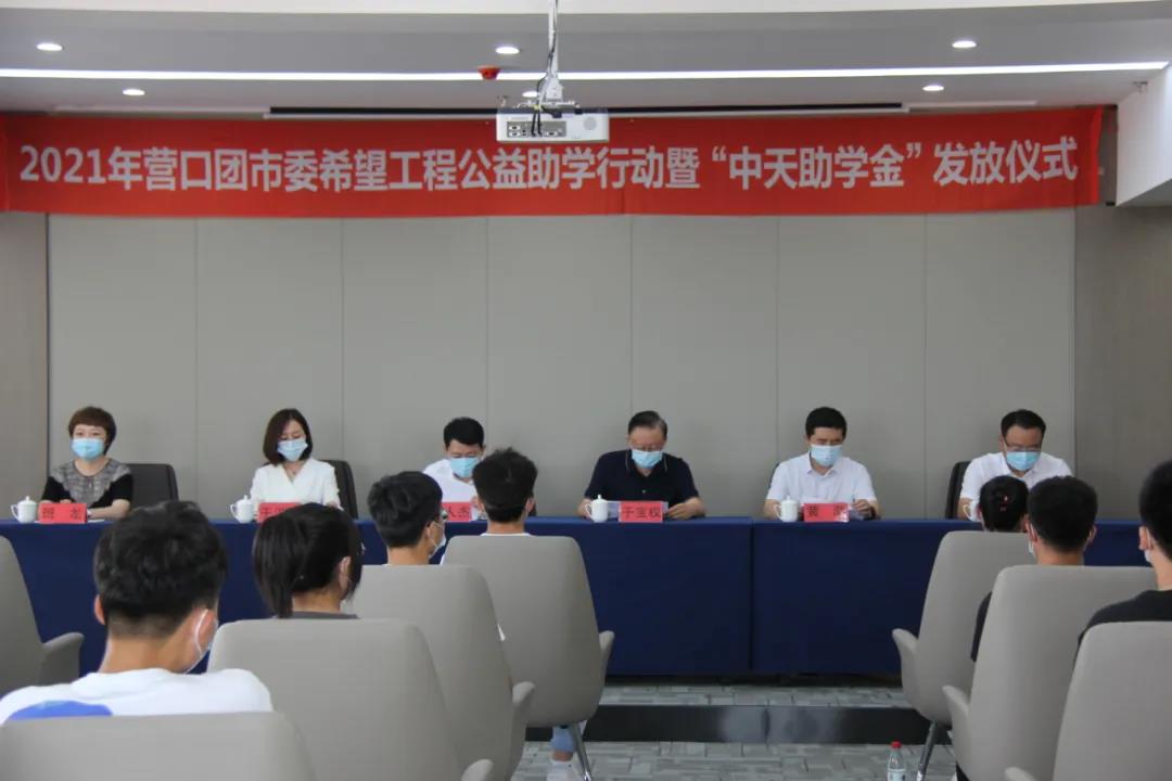 8月13日下午,2021年?duì)I口市希望工程公益助學(xué)活動暨“中天助學(xué)金”發(fā)放儀式在中天集團(tuán)總部會議室舉行。營口團(tuán)市委書記李人杰、副書記李禹霖,營口市慈善總會會長黃渤,市委教育工作委員會專職委員班龍,中天集團(tuán)董事長于寶權(quán)、總裁于洪波、行政人力資源總監(jiān)許文明以及獲得資助的35名學(xué)生,出席了本次發(fā)放儀式。