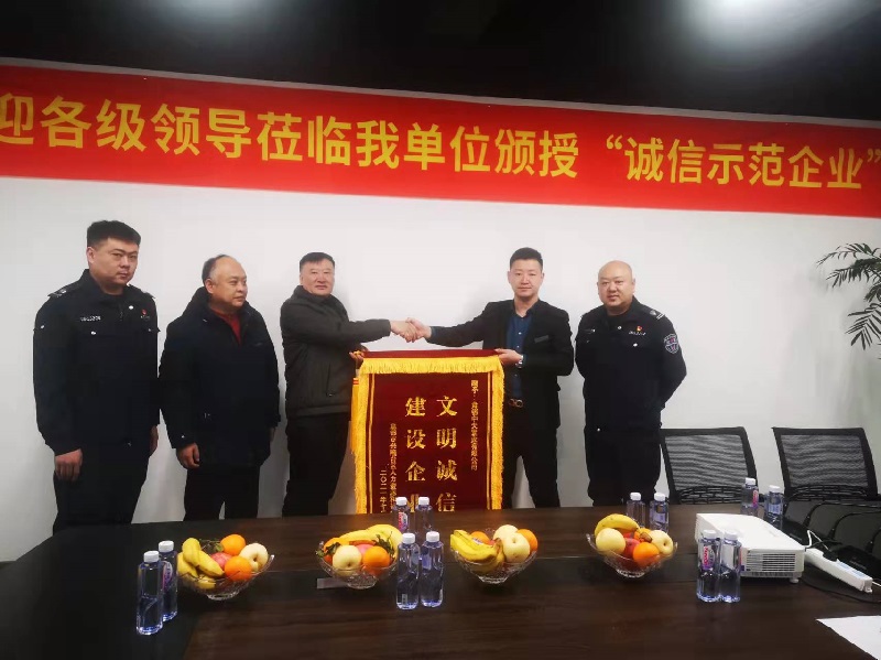 近日,盤錦市興隆臺區(qū)人力資源和社會保障局局長李慶,興隆臺區(qū)勞動監(jiān)察大隊柴助海主任等一行領導蒞臨中天企業(yè)集團盤錦城市公司,為企業(yè)頒發(fā)“2021年度興隆臺區(qū)誠信建設示范企業(yè)”榮譽牌匾。