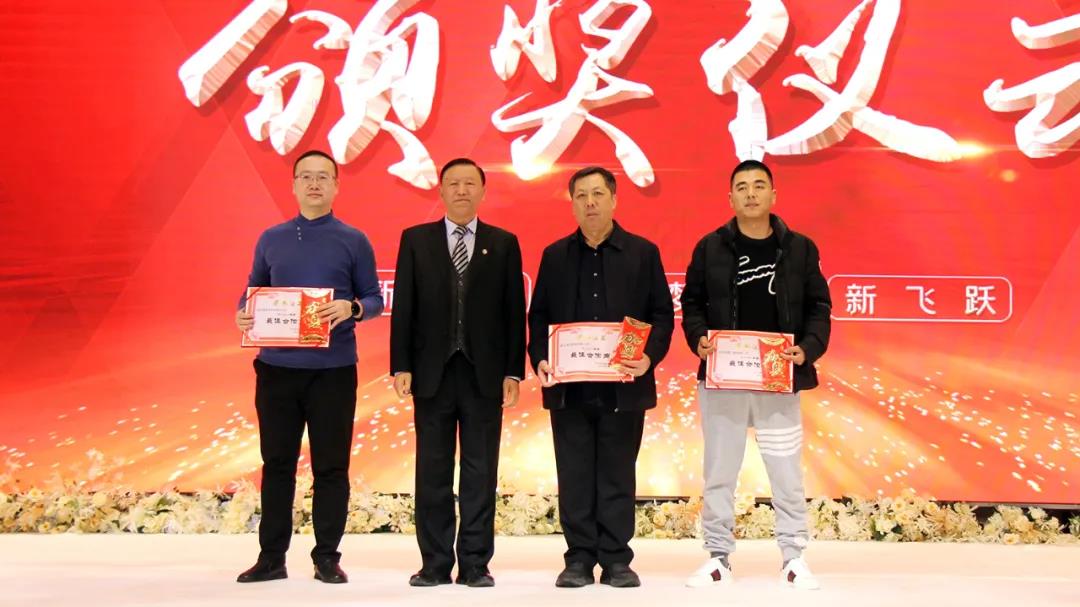 今年大會(huì)邀請(qǐng)了部分合作單位的領(lǐng)導(dǎo)參會(huì),同時(shí),增設(shè)了“最佳合作單位”獎(jiǎng)項(xiàng),于洪濤執(zhí)行總裁宣讀了表獎(jiǎng)決定。2021年,集團(tuán)十個(gè)項(xiàng)目同時(shí)開(kāi)工建設(shè),建設(shè)面積達(dá)135萬(wàn)平方米,創(chuàng)造了中天集團(tuán)成立以來(lái)最高紀(jì)錄。成績(jī)的取得,得益于合作單位的鼎力協(xié)助和大力支持,各合作單位守信用、重承諾,遵守合同協(xié)議,為中天的發(fā)展做出了貢獻(xiàn)。大會(huì)授予營(yíng)口鴻元建筑有限公司董事長(zhǎng)李余躍、沈陽(yáng)祺景門窗有限公司總經(jīng)理李金秋、沈陽(yáng)晟聯(lián)商貿(mào)有限公司總經(jīng)理郝偉三人為2021年度最佳合作商稱號(hào)。于寶權(quán)董事長(zhǎng)親自為他們頒獎(jiǎng)。