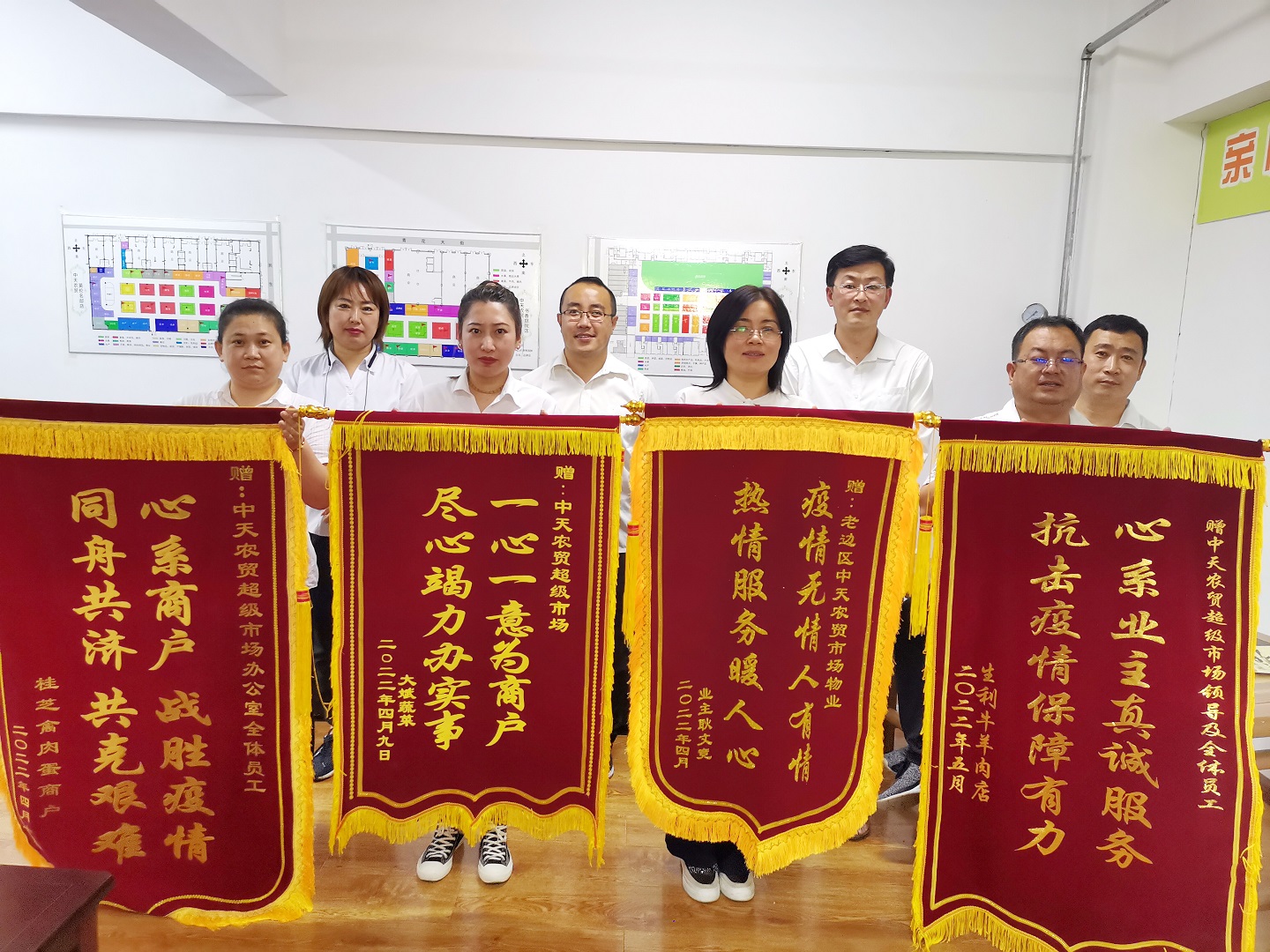 隨著營(yíng)口市第二次疫情封控全面解除,一面面印有“疫情無(wú)情人有情,情系業(yè)主暖人心”、“疫情面前不畏艱險(xiǎn),業(yè)主至上暖至人心”的錦旗,一封封寫滿“感謝付出”、“隔離不隔愛”的感謝信,紛紛送至中天物業(yè)、中天農(nóng)貿(mào)及中天酒店。短短的十余天,各物業(yè)小區(qū)先后收到錦旗22面,農(nóng)貿(mào)公司收到錦旗4面,各單位收到表?yè)P(yáng)信30余封,微信群、朋友圈點(diǎn)贊10萬(wàn)余次,這些閃亮的數(shù)字,都是中天人幫助業(yè)主和商戶攻克疫情的軍功章。一面錦旗,一份肯定,一份責(zé)任,也道盡了抗“疫”期間的溫暖。
