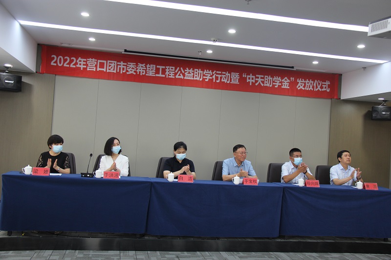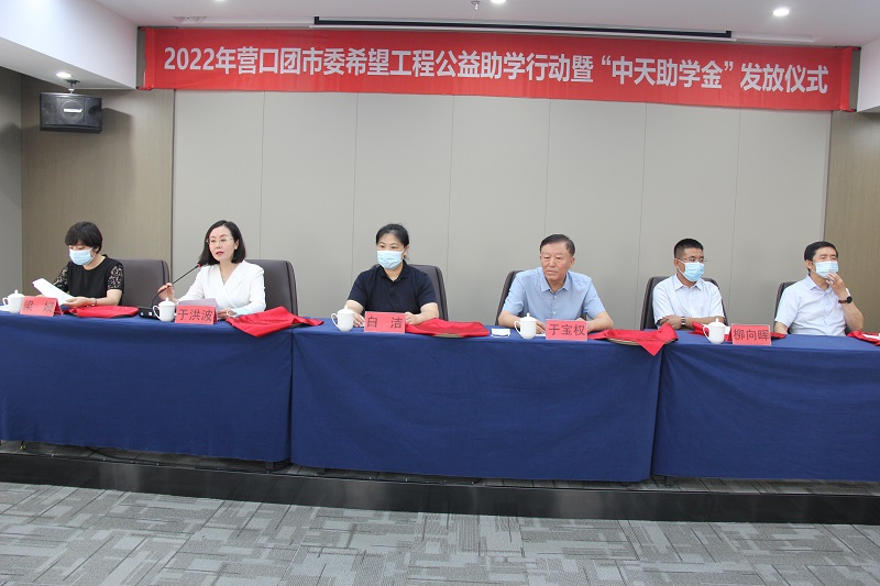 8月9日上午,2022年營口市希望工程公益助學(xué)活動暨“中天助學(xué)金”發(fā)放儀式在中天集團(tuán)總部會議室舉行。營口市團(tuán)市委書記白潔,中天企業(yè)集團(tuán)董事長于寶權(quán)、總裁于洪波,營口市教育局副局長柳向暉,營口市慈善總會副會長黃渤,營口市團(tuán)市委副書記梁嫚以及獲得資助的31名學(xué)生,出席了本次發(fā)放儀式。