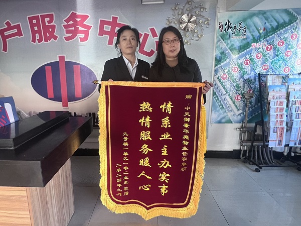 “你們對(duì)我母親太關(guān)心了太照顧了,真心感謝你們!”10月15日下午,御景華庭9號(hào)樓1單元102的業(yè)主郭女士手持著一面印著“情系業(yè)主辦實(shí)事,熱情服務(wù)暖人心”的錦旗,滿懷謝意的走進(jìn)了御景華庭物業(yè)服務(wù)中心。感謝物業(yè)人員平日里對(duì)家中母親的熱情服務(wù)和悉心照顧。
