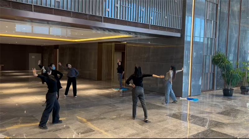 此次舞蹈排練,公司各部門員工踴躍參與,涵蓋不同崗位,大家齊聚排練場地。排練現(xiàn)場,專業(yè)舞蹈老師耐心指導(dǎo),從基本舞步到復(fù)雜隊形變換,細致講解每個動作要點。員工們認(rèn)真學(xué)習(xí),反復(fù)練習(xí),力求動作精準(zhǔn)到位。盡管不少人毫無舞蹈基礎(chǔ),但她們不怕困難,相互鼓勵、相互幫助,展現(xiàn)出團隊協(xié)作的強大力量。