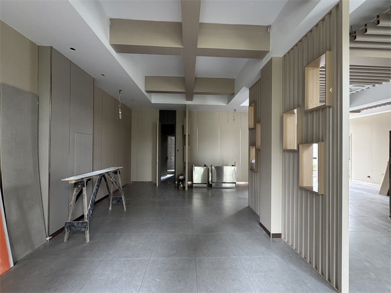 木工團隊同樣表現(xiàn)出色,精心打造的吊頂,不僅造型美觀,還極大提升了空間層次感;門窗套安裝牢固且精致,餐臺柜體更是兼具實用性與美觀性,各功能區(qū)在木工師傅的巧手下完美呈現(xiàn)。此外,水電線路鋪設(shè)規(guī)范合理,廚房設(shè)備安裝調(diào)試完畢,墻面裝飾與照明系統(tǒng)陸續(xù)安裝。