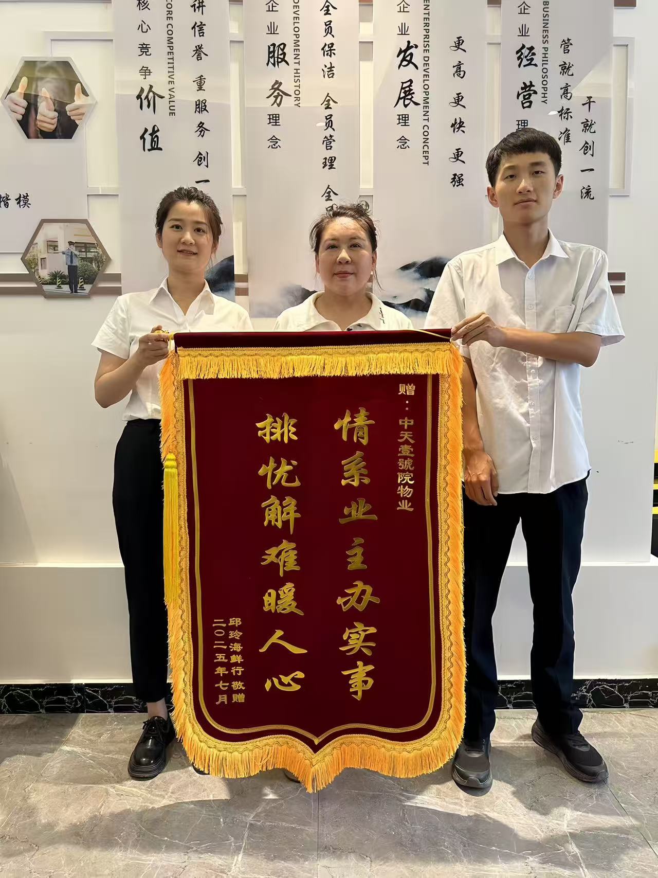 2025年7月12日,壹號(hào)院小區(qū)門市業(yè)主邱女士帶著一面寫有“情系業(yè)主辦實(shí)事 排憂解難暖人心”的錦旗,送到了小區(qū)物業(yè)服務(wù)中心,向物業(yè)工作人員及管家表達(dá)感謝。接下來(lái),就讓我們一起走進(jìn)錦旗背后的故事吧!