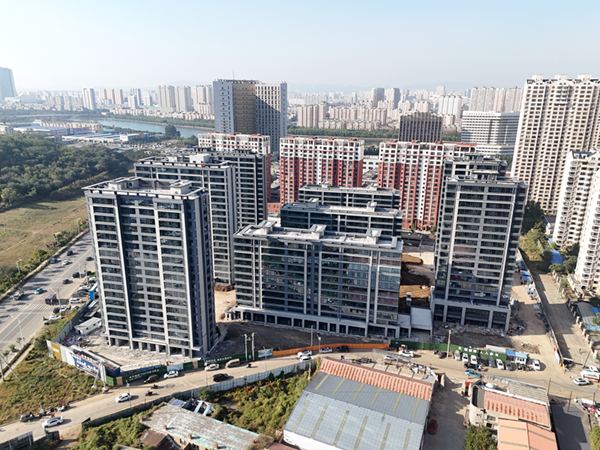 在遼陽城市公司中天·央著項目一期施工現(xiàn)場,主體結(jié)構(gòu)已經(jīng)全部封頂,樣板間已裝修完成并開放,外墻裝飾部分,一半樓棟已基本完成,其余樓棟的外墻保溫、鋁板龍骨施工和涂料施工總體完成50%左右。施工現(xiàn)場防火門、進戶門、窗已陸續(xù)進場,窗玻璃整體已安裝完成50%,地熱及地面施工完成50%,樓梯間瓷磚整體完成30%。電梯安裝單位已進場安裝,施工進度25%。為實現(xiàn)年末完美收官,本月工程部組織各施工單位、監(jiān)理單位、建設單位每周召開例會,安排現(xiàn)場施工進度及需要解決的問題,制定年底施工進度目標,重點關(guān)注施工質(zhì)量,以高要求、高標準的工作作風完美詮釋遼陽首家第四代住宅的品質(zhì),保證達到公司預期的結(jié)果。